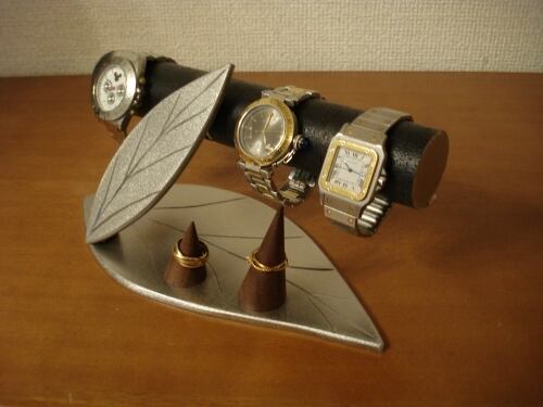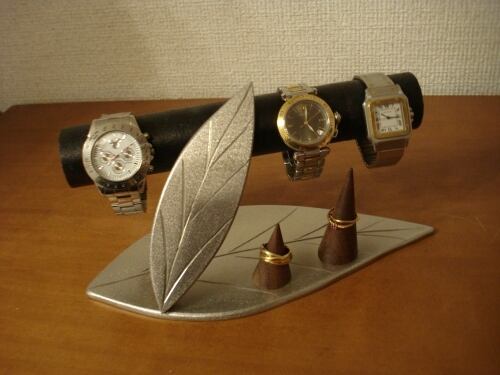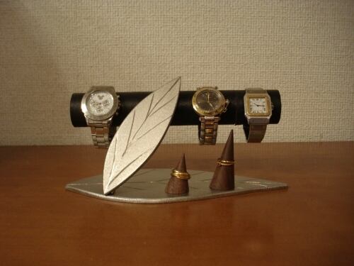 ウォッチスタンド ダブルリーフ時計インテリア収納スタンド ブラック 指輪スタンド付き No.130126