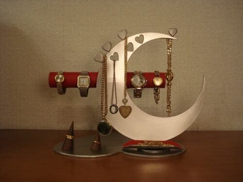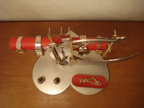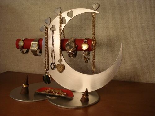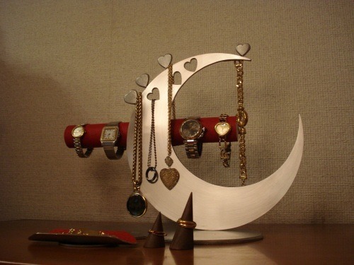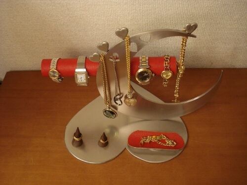 アクセサリーケース レッド指輪、ネックレス、腕時計三日月スタンド パート2 No.130613