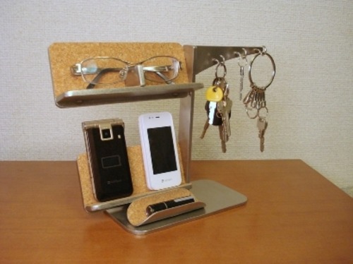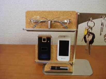 キー メガネ 携帯電話スタンド スマホ小物トレイ付きスタンド 受注販売 No.90506-1