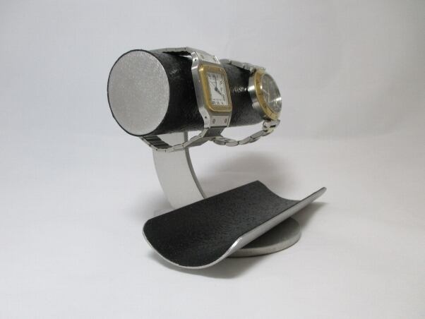 黒2本掛けロングトレイ丸パイプ腕時計スタンド ブラック ak-design N161203