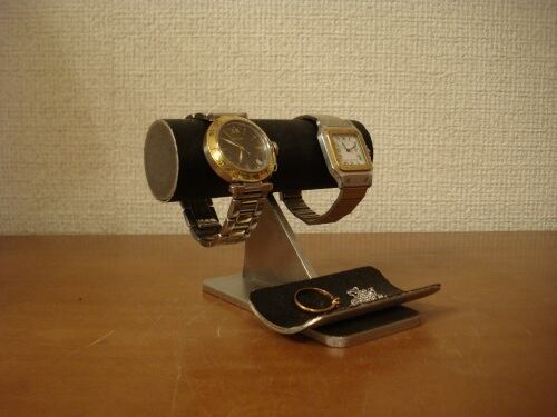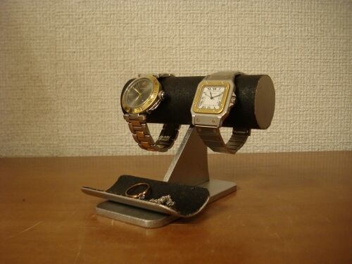 誕生日プレゼントに ウォッチスタンド ブラック2本掛けトレイ付き時計スタンド N130221