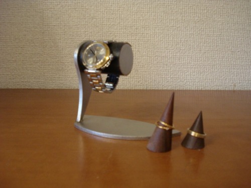 腕時計スタンド ブラックコルク腕時計スタンド ダブルリングスタンド付き No.121028