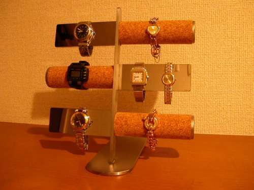 時計スタンド 12本掛けコルク&バー腕時計スタンド