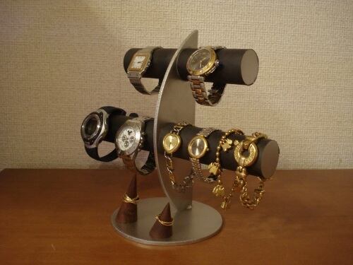 ブラック三日月6本掛け腕時計スタンド木製指輪スタンド No.140522