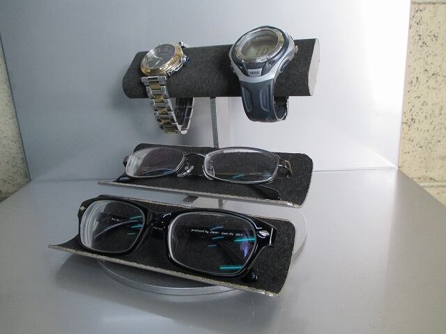 腕時計 飾る だ円パイプ腕時計2本掛け、メガネ2本トレイスタンド 2019-3-9