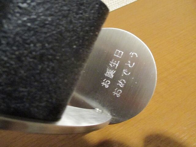 『お誕生日 おめでとう』という文言をステンレスに刻印したスタンドです。おめでとうの気持ちを込めた腕時計スタンドはきっと喜ばれますよ。