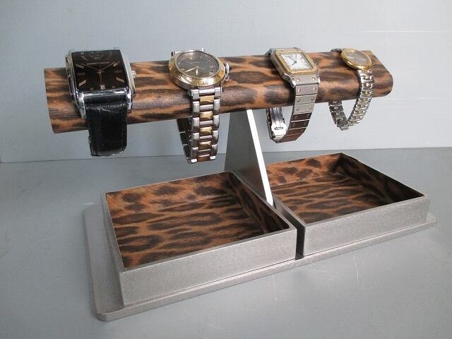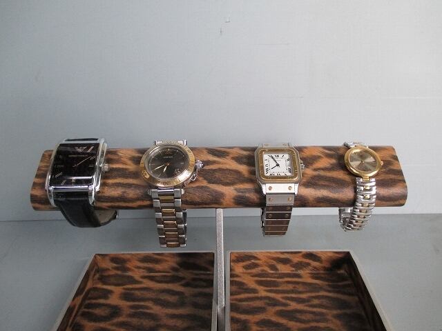 腕時計 飾る ヒョウ柄円ダブルでかいトレイ腕時計スタンド ak-design No.190420