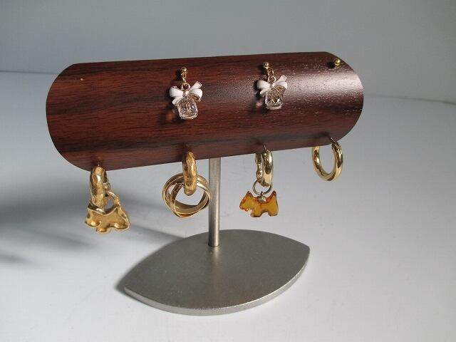 かわいい、機能的ピアス、イヤリングディスプレイスタンド 木目調バージョン 4セット(8穴) 受注生産