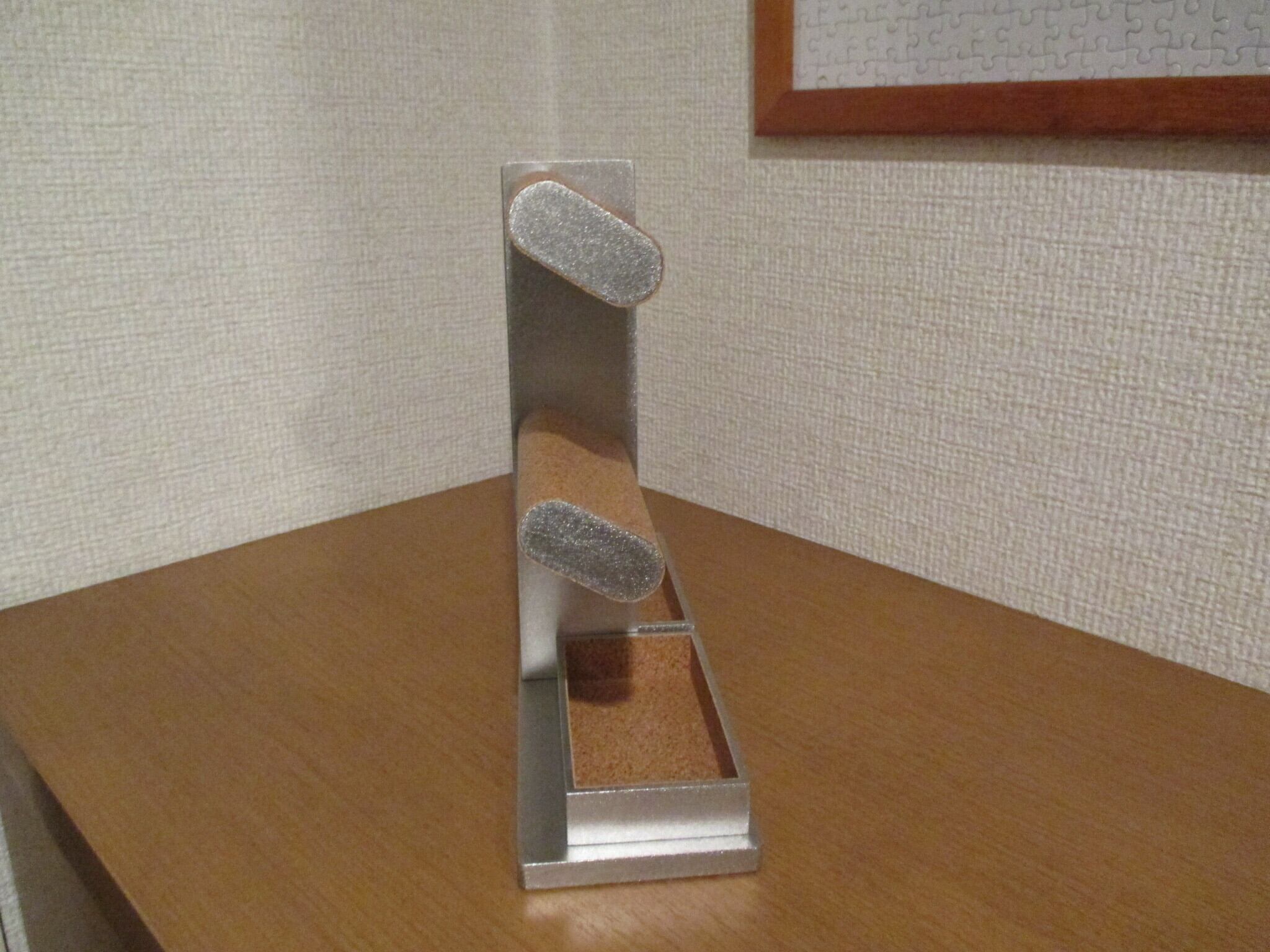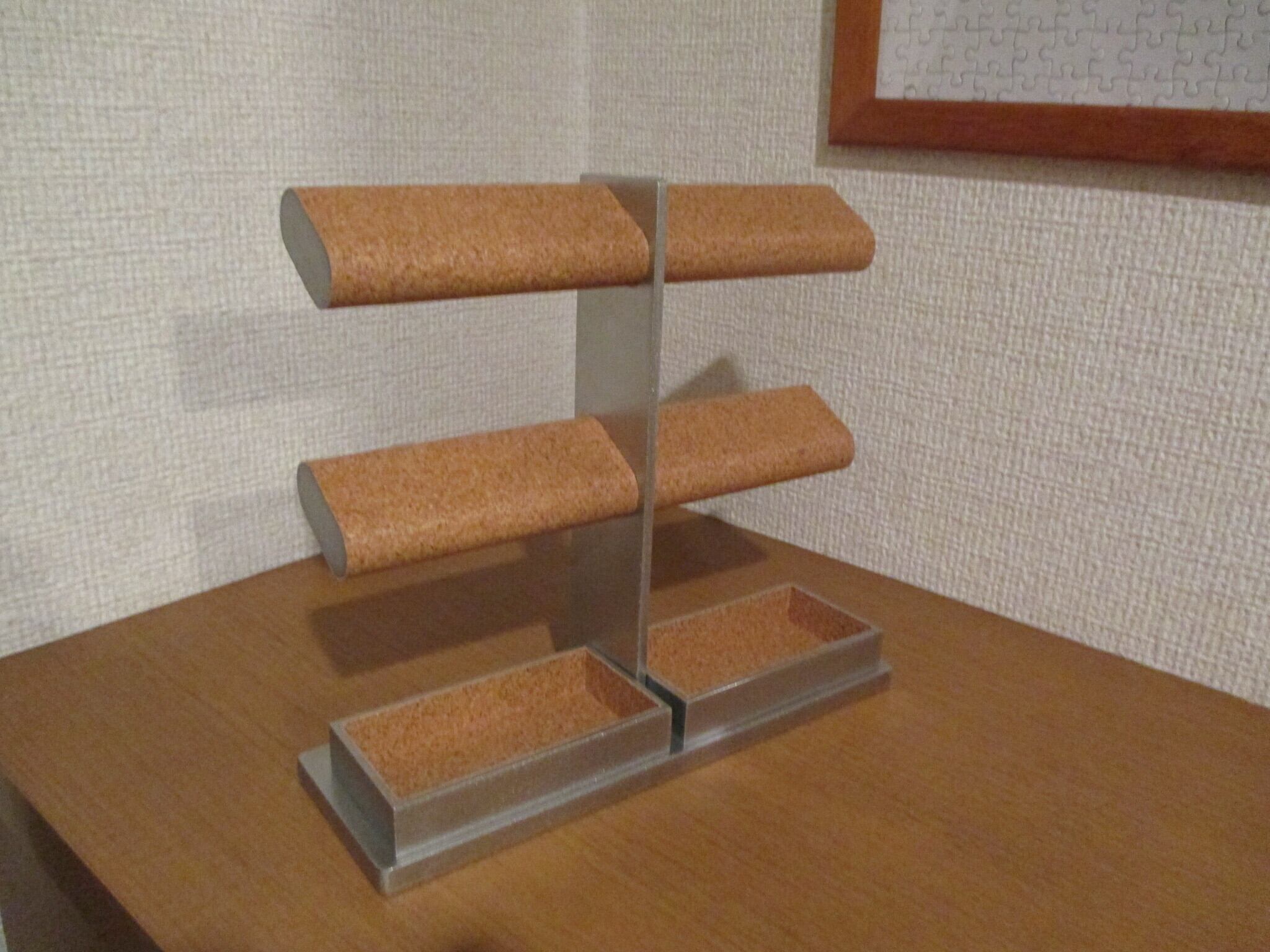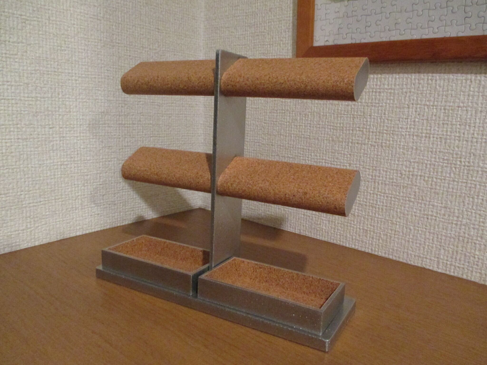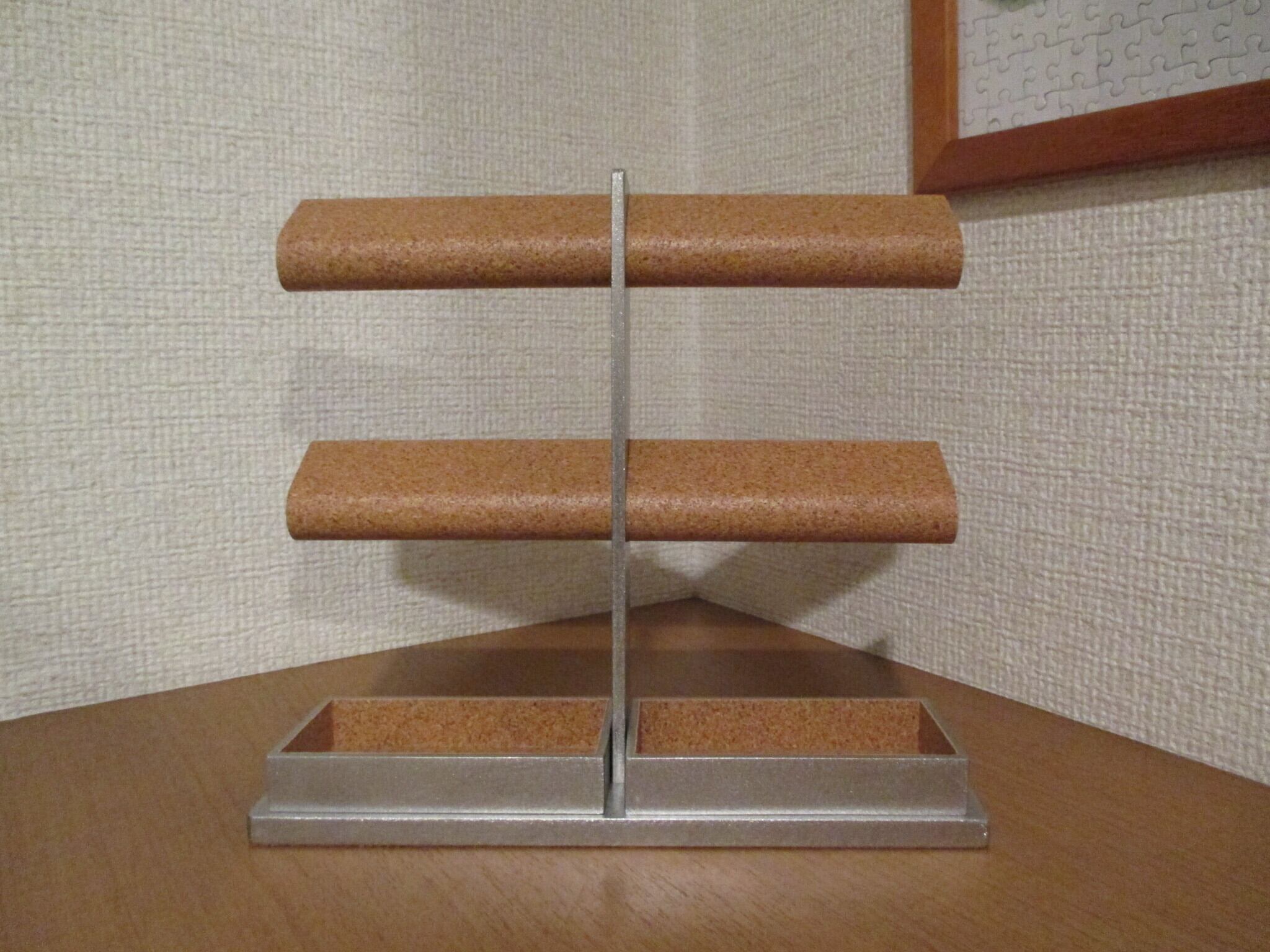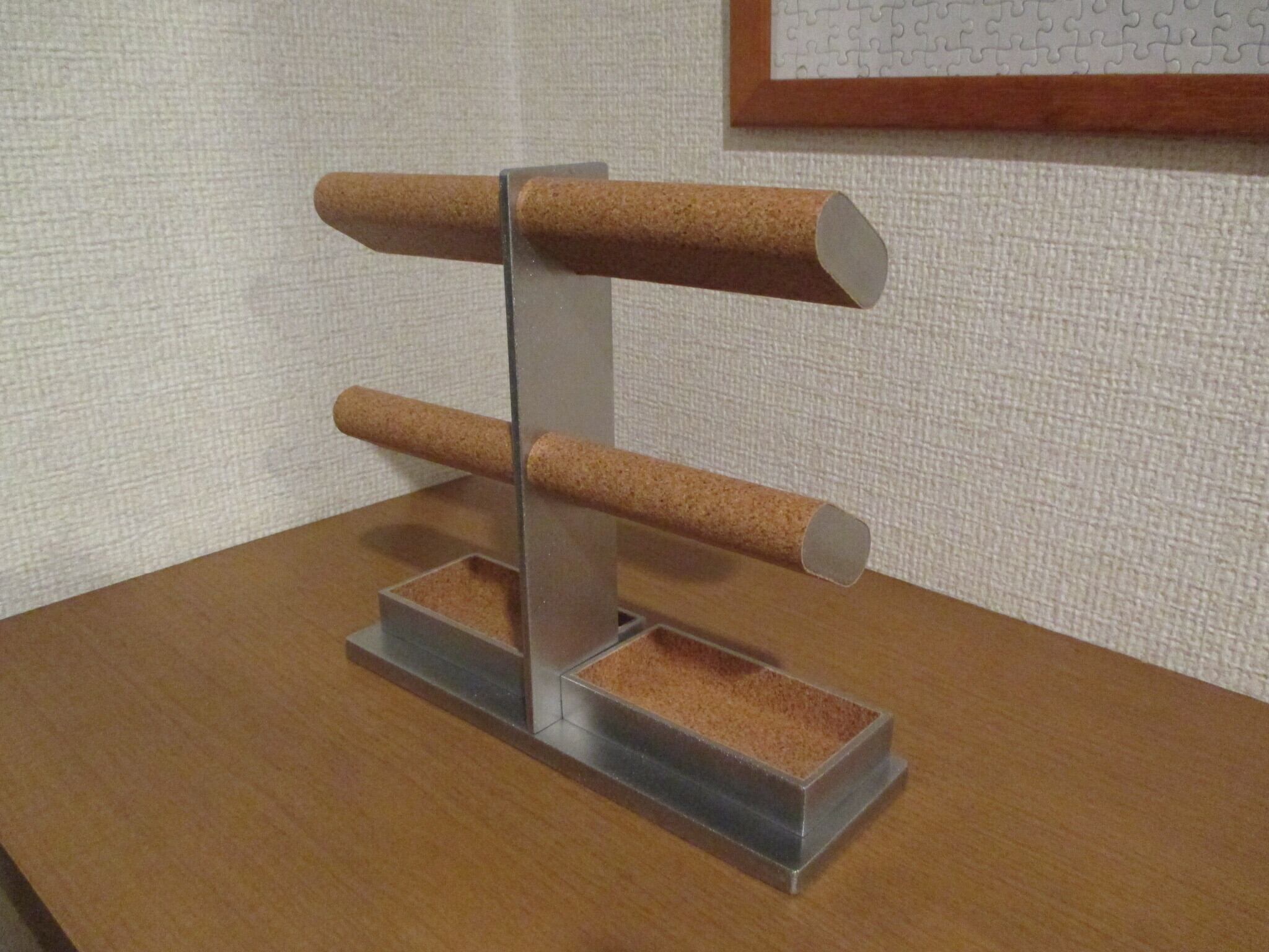 サイズ:長さ22cm 奥行き7cm 高さ19.5パイプの径4.0cm 材質 ステンレス コルクシート、指輪スタンド