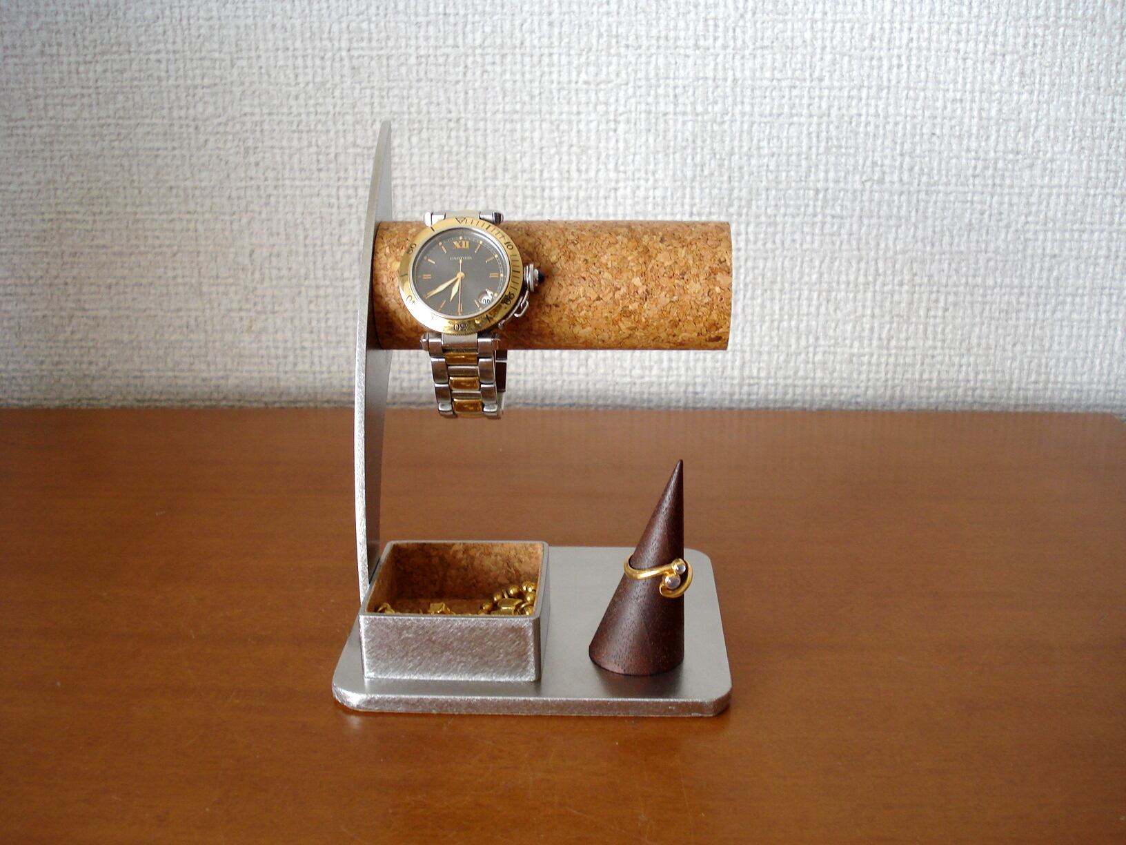 腕時計スタンド 腕時計を飾る アクセサリー飾る トレイ付き丸パイプ2本掛け腕時計スタンド 09118 ak-design