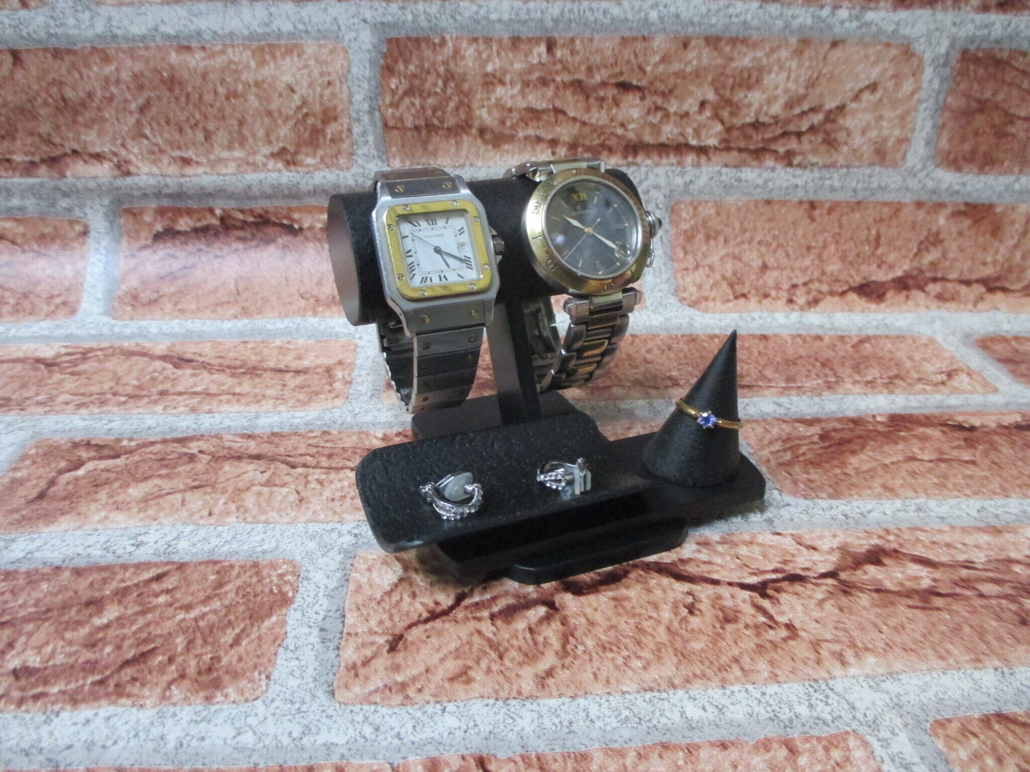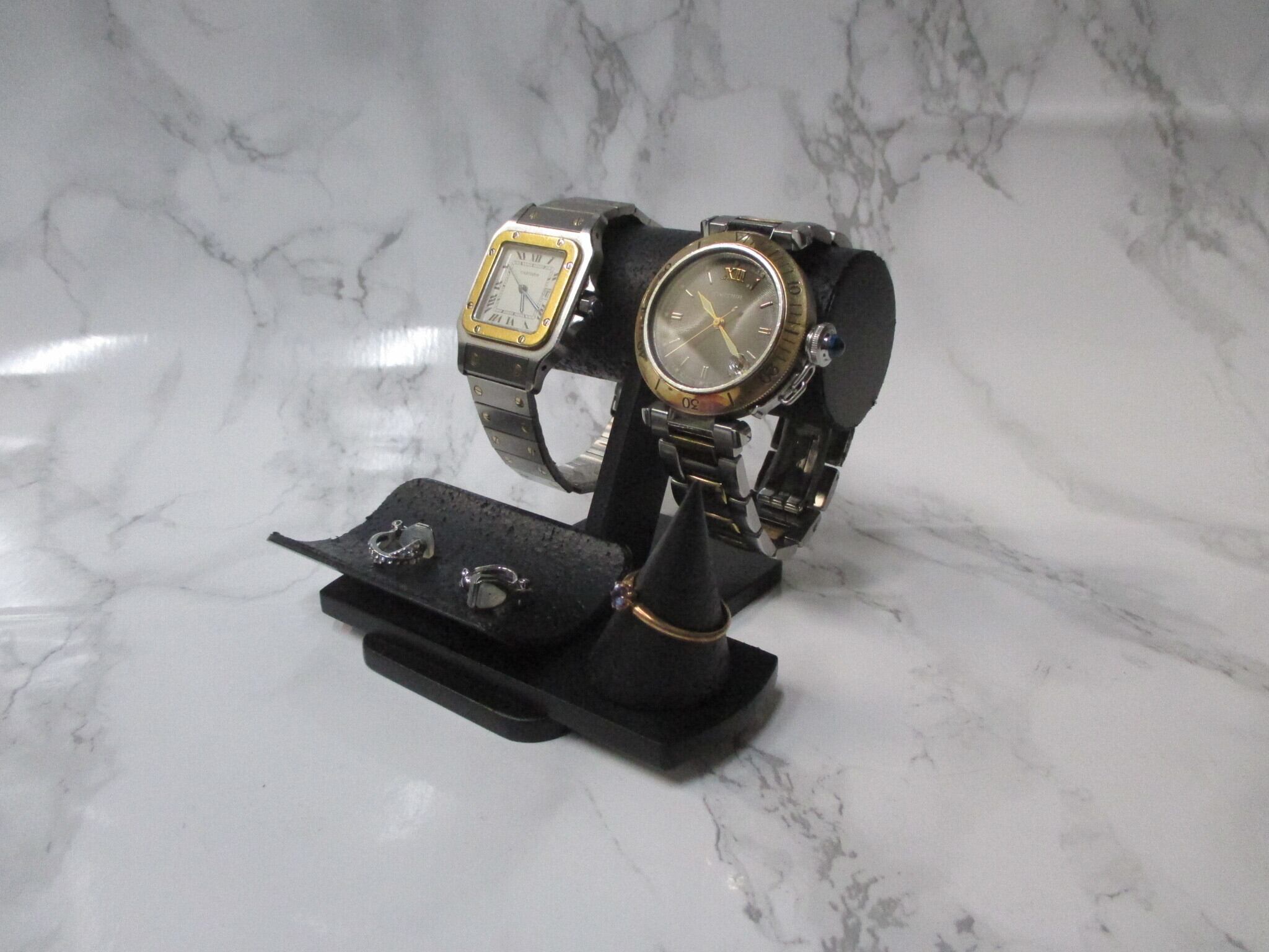 腕時計スタンド 腕時計スタンド 高級 腕時計スタンド おしゃれ 腕時計スタンド 手作り オールブラック細い丸パイプ腕時計スタンド リングスタンド、小物入れ付きトレイ付き れ オールブラック細い丸パイプ腕時計スタンド リングスタンド、小物入れ付きトレイ付き