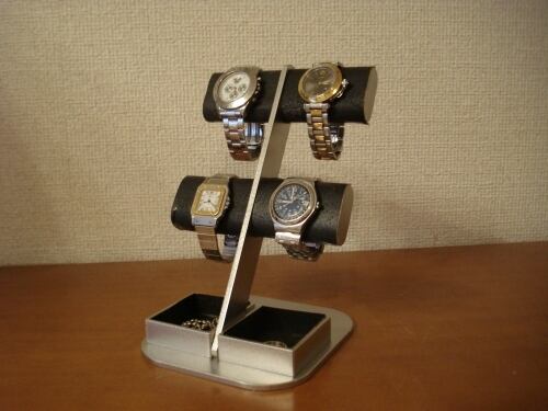 腕時計スタンド 誕生日プレゼント プレゼント ブラック4本掛け楕円ダブルトレイディスプレイスタンド