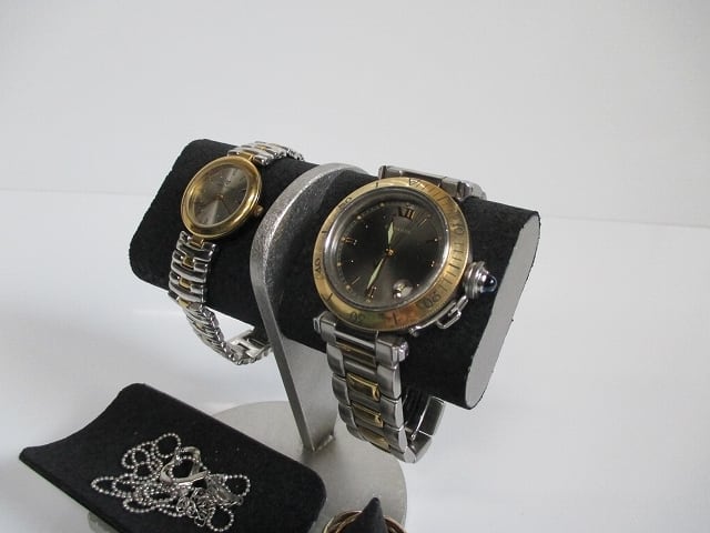 腕時計スタンド 腕時計 飾る ブラック2本掛けだ円パイプトレイ、指輪スタンド付き腕時計スタンド 190803
